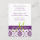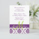 Lila Damask Monogram Wedding Reception Begleitkarte
