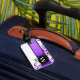 Lila Damastmuster und Monogramm Gepäckanhänger