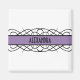 Eleganter und eleganter Deko Blühe Magnet mit einem extravaganten, lila Rand. Einfach anpassen, einfach personalisierten Text in die vorhandenen Textfelder einfügen. Ändern Sie die Hintergrundfarbe in eine beliebige Farbe. Klicken Sie auf "Anpassen", um weitere Personalisierungsoptionen zu erhalten.