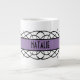 Eleganter und eleganter Deko Blühe Tasse mit einem extravaganten, lila Rand. Einfach anpassen, einfach personalisierten Text in die vorhandenen Textfelder einfügen. Ändern Sie die Hintergrundfarbe in eine beliebige Farbe. Klicken Sie auf "Anpassen", um weitere Personalisierungsoptionen zu erhalten.