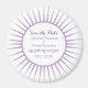 Raffinierter und eleganter Deko Retro Save the Date Magnet in lila mit einem kreisförmigen Deko-dekorativen Sonnenburstdesign. Einfach zu anpassen, fügen Sie einfach Ihre Hochzeitsdetails in den Textfeldern zur Verfügung gestellt. Klicken Sie auf "Anpassen", um weitere Personalisierungsoptionen zu erhalten.