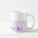 Maßgeschneiderte weiße Tasse mit lila dekorativen Band (lila Dankeschön ist nicht anpassbar). Sie können Text (Schriftart, Größe, Farbe und Position) ganz einfach hinzufügen und ändern, indem Sie auf die Schaltfläche Anpassen klicken. Andere Modelle sind erhältlich.
