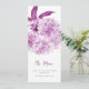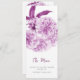 Schöne lila Blüte Aquarell bemalt Hochzeitsessen Menü oder besondere Veranstaltung Menü. Bearbeiten Sie dieses 4-Gang-Menü mit Ihren eigenen Worten. Einfaches und dennoch modernes lila Blumenmenü. Ideal für lila Hochzeiten, Frühjahrshochzeiten oder Frühjahrsveranstaltungen. © Design und Aquarellmalerei von Sarah Trett. www.sarahtrett.com für www.mylittleedenweddings.com auf zazzle.
