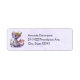 Adressetiketten mit einer Illustration eines mythischen Drachens. Lila und blaue Waage. Eine geblümte Goldkrone mit Hörnern schmückt den Kopf. Magisch, lustig und freundlich.