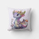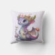 Kissen mit einer Illustration eines mythischen Drachen. Lila und blaue Waage. Eine geblümte Goldkrone mit Hörnern schmückt den Kopf. Magisch, lustig und freundlich.