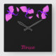 Passen Sie diese Drachenuhr mit Ihrem Namen oder einem anderen Text an. Drei rosa und lila Drachen sind oben auf der Uhr auf schwarzem Hintergrund angeordnet. Am Ende der Uhr befindet sich ein Bereich, in dem der Text in einem alten englischen Schriftart personalisiert werden kann. Der Text ist in einem koordinierenden Farbton in Rosa gehalten. Ich habe dieses Design kreiert, um junge Frauen (Think Teenager) mit einer dunkleren Seite und einer weiblichen Seite anzusprechen. Dieses Design führt sowohl einfache Vektorgrafiken zusammen, um eine fette Aussage zu machen.