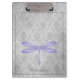 Ziehen Sie Notizen und Erinnerungen auf einer sicheren Oberfläche mit einer Lila Dragonfly Damask Personalisierte Zwischenablage. Im Clipboard-Design steht eine farbenfrohe Libelle gegenüber einem Vintagen, grauen Damast-Muster. Zusätzliche Geschenkartikel in diesem Design sowie eine Vielzahl von Farben.