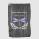 Ein einzigartiges Handtuch zum Golfen mit einem Lila Dragonfly Rustic Personalisiert Golf Handtuch. Das Handtuchdesign besticht durch eine lebendige Libelle, die mit einem zarten Blattwerk und einem dunkelgrauen, rustikalen Holzhintergrund geschmückt ist. Zusätzliche Geschenkartikel in diesem Design sowie eine Vielzahl von Farben.