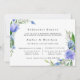 Das Design zeichnet sich durch eine bedruckte Farbe mit blumengeschmückten Elementen in lila und staubblauen Farbtönen auf grünen Blätter aus Kranz und Peony Tullip Hyacinths Blume auf einem hellblauen Aquarellhintergrund aus. Ideal für Ihre Hochzeitsfeiern!
