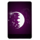 Eid Mubarak grüßt Illustration mit Silhouetten des Mondes, Sternen und einer Moschee. Eid Mubarak Schrift in arabischer Schrift und einer Ziergrenze.