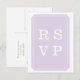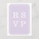 Moderne und schicke Simply Elegant Wedding Response Postcard mit elegantem lavender Ticket Emblem Design. Dieses klassische und stilvolle Design ist leicht mit Ihren Hochzeitsdetails zu gestalten. Klicken Sie für weitere Anpassungsoptionen auf Anpassen.