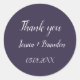 Lila, einfache, minimalistische, formale, zeitgenössische Hochzeitsticker. Klassische Runde Aufkleber. Personalisieren Sie Ihre Namen und das Datum der Hochzeit.