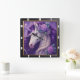 Lila Einhorn-Fantasie Quadratische Wanduhr