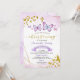 Lila Einladung zur Beweihung von Blumen und Schmetterlingen