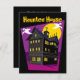 Einladungen Spuk. Das dreistöckige, schwarze Herrenhaus mit über dem Dach fliegenden Tüchern, Vollmond und hellen Fenstern, schwarz, lila mit hellgelben und weißen Akzenten. Fügen Sie Ihren benutzerdefinierten Text online hinzu.