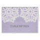 Einfache und raffinierte Elegant Lace Wedding Tischnummer Card mit einem weißen Spitzenmotiv auf einem leichten lila Imitat Vintagen Papierhintergrund. Diese klassische und stilvolle Tischkarte eignet sich perfekt für eine rustikale Hochzeit. Einfach mit den entsprechenden Tischnummern anpassen. Klicken Sie auf "Anpassen", um weitere Personalisierungsoptionen zu erhalten.
