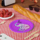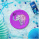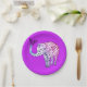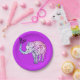 Bild des Elefanten mit Schmetterling im Kofferraum vor einem lila Hintergrund auf Tellern auf Papier