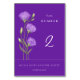 Tischkartennummer mit elegantem Bouquet aus lila Eustomas-Blume und hellgrünen Blätter, pastellfarbenen Frühling oder Sommersanft romantische florale Eustomas Rose Blume. Botanische digitale Aquarellmalerei. Blumenblüte, Flaschenkopfnummer. Lila Sammlung Eustomas.