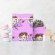 Eine wunderschöne handgezeichnete volkstümliche Fee mit einem lila Kleideschenkpapier zum Geburtstag eines kleinen Mädchens.