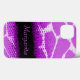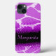 Helles Tier gemusterte Gehäuse in Schwarz, Weiß und fett lila Farbtönen. Personalisieren Sie dieses Objekt mit Ihrem eigenen Namen. Derzeit liest Margarita. Dieses originale Muster von Sarah Trett basiert auf dem Muster einer Giraffe mit einem halbmondförmigen Punktegewinn-Overlay.