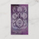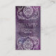 Diese trendigen böhmischen Visitenkarten haben eine coole Pflaume lila-weiß Henna inspiriert Aquarell Blumendesign. Moderne und einzigartige Visitenkarten für Yogalehrer, Tätowierkünstler, Boutiquen, Salons, Haarstylisten, Kosmetologen, Innenarchitekten und Modedesigner .
