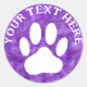 Weiße Version des Pfotendrucks. Maßgeschneiderte Aufkleber für Dekoration und Kennzeichnung. Lila Aquarellversion. Text kann zur Anpassung bearbeitet werden.