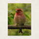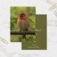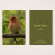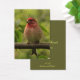 Diese Kunsthandwerkskarte verfügt über eine wunderschöne lila Finke, die hoch oben auf einem Zweig sitzt und von grünen Blätter umgeben ist. Er hat einen brillanten roten Kopf und eine blassrosa Brust. Sein robuster Schnabel ist perfekt zum Rissen von Samen. Er ist der Vogel, den der berühmte Ornithologe Roger Tory Peterson als "in Himbeersaft getaucht" bezeichnete.