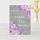 Happy 15. Hochzeitskarte mit lila Aquarellfarben-Blume, rustikalem Holzmuster und nachdenklichem Vers.