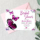 Lila Schmetterling Themed Bridal Dusche Einladung. Lila und rosa Farbgebung mit Schmetterlingen. Girl-Polterabend schöne rosa lila Schmetterlinge und Blume Blumenarrangements niedliche Blume
