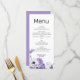 Die lila Blumenkarte 4"x 9" wird von szdesign erstellt. Das Design zeichnet sich durch lila Aquarellfarben-Blume an der verlassen unteren Ecke und weißem Hintergrund aus. Es gibt viele verschiedene Kartengrößen . Obwohl es mit Hochzeiten verbunden ist, eignet es sich für viele Anlässe, falls die Kombination aus weißen und violetten Blumen für die lila/Lavendeldekoration geeignet ist. Einfache Personalisierung Prozess starten mit einem Klick auf 'PERSONALIZE', der Ihnen die Menükarte automatisch für Ihren Zweck gibt.