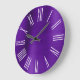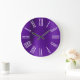 Lila Foil White Roman Numerals Große Wanduhr