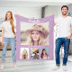 Eine große Fotovorlage und 3 drei kleinere Fotos, Bilder von Freunden, Haustiere, Geschwister. Ein lila, lila Hintergrund, weißer Text. Personalisieren und fügen Sie Ihre eigenen Fotos, einen Namen und Text.