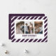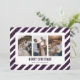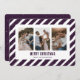 Lila Foto Frohe Weihnachtskarte mit einer Collage von drei Fotos und einem lila-weiß gestreiften Hintergrund mit kleinen Sternen. Diese elegante Urlaubskarte lässt sich einfach mit Ihren Fotos und dem Familiennamen personalisieren.