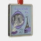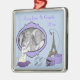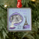 Ein lila Rahmen, der durch den Eiffelturm hervorgehoben wird, ein Paar schwarzer, strappiger High Heels, die aus einer Vintagen Hutbox herausfallen, eine Poststation und ein weißes Poodle auf einem lila Kissen bilden das Herzstück dieses eleganten Sake-Fotos. Laden Sie Ihr eigenes Foto hoch und passen Sie das Jahr und den Namen an. Dieses elegante Design macht ein großartiges Geschenk für jede Gelegenheit!