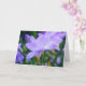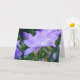 Originelles Kunstwerk mit meinem Originalfoto von hübschen lila Freesia Blume in Blüte in einer Gartenlandschaft, wobei eine Blume einen Tau auf dem Blatt hängt. Die Komposition dieses Bildes macht einen künstlerischen Eindruck. Die Karte ist innen leer, sodass Sie genug Platz haben, um Ihre persönlichen Briefe und Notizen zu schreiben.