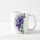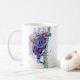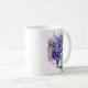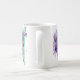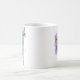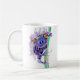traditionelle Aquarellkunst und Farbkunst eines lila gefärbten Frosches, der einen Baum hinaufklettert, während er auf einer Kaffee-Tasse den Betrachter anstarrt