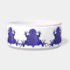 Lila Frösche auf einem weißen Hintergrund kreisen diese Schüssel ein.
