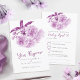 UAWG verfügt über eine lila lila Blüte botanische Aquarellmalerei, die diese UAWG Einladungen mit Ihren Namen, Daten und Formulierungen bearbeitet. Ein wunderschönes Blumendesign, das sich ideal für eine lila Maulwurfhochzeit eignet. © Original handgemalte Aquarellkunst und Design von Sarah Trett für www.mylittleedenweddings.com