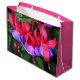 Genießen Sie Ihr Geschenk mit dieser großen Geschenktasche mit rosa besticht durch ein Foto aus hängenden, lila Fuchsia-Blume mit rosafarbenen Sepallen. Ein schönes, blumengeschmücktes Design! Wählen Sie aus einem glänzenden oder matten Stil.