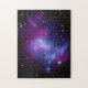 Ein cooles himmlisches Rätsel für ihre Geburtstagsfeier zum Stern. Ein hübsches Foto in Schwarz, Blau, lila und Weiß. Galaxy Cluster MACS J0717 dank NASA und Hubble Programm.