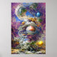 Schöne Illustration eines lila galaxischen Sonnensystems. Wombo Dream AI und Künstlerkooperation.