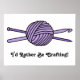 Dieses Design besteht aus einer lila Garnkugel vor einer Stricknadel und einem Häkelhaken. Ändern Sie den Text oder fügen Sie Ihren Namen, um dieses Produkt zu Ihrem eigenen zu machen! Karo in meinem Shop, um dieses Design in anderen lustigen Farben zu finden! ©2013 Jessica McConnell Alle Rechte vorbehalten.