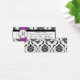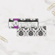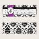 Gastgeschenk Hochzeit-Tag mit Dankeschön-Nachricht und mit Vintagem schwarz-weiß-Damast-Muster gedruckt mit dem Monogramm Initial auf einer lila Zeile. Gedruckt mit Ihren Namen, Monogramm und danke Ihnen Nachricht und Hochzeitsdatum. Perfekte Etikettenmarke für Ihre Gastgeschenke Hochzeiten. Design von Elke Clarke© Graphics lizenziert.