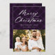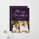 Elegante Urlaubskarte mit "Frohe Weihnachten", die in einem weißen Kalligrafieschrift oben auf dem Design auf einem lila karierten Hintergrund dargestellt ist. Personalisieren Sie die Kartenvorderseite, indem Sie Ihren Namen, das Jahr und ein Foto hinzufügen. Die Karte kehrt zurück, um zwei zusätzliche Fotos auf einem karierten Hintergrund mit feinen weißen Schneepunkten anzuzeigen. Die Multi-Foto Weihnachtskarte eignet sich hervorragend, um Ihre Lieblings-Fotos zu präsentieren!