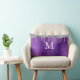 Lila gebürstetes Metallglas und Glitzer Personalisiertes Monogramm Lumbalkissen. Bearbeiten und personalisieren Sie das Design.