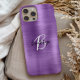 Lila gebürstetes Schwarz-weißes Script Monogram Case-Mate iPhone Hülle