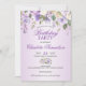 Einfach elegantes, rustikales Bouquet-Design in Aquarell (Aquarell) grüne Vegetation, Lavendel, lila, violett, lila, rot, pfirsichfarben, weiße Blume Rose / Peony auf weißem Hintergrund und dunkelgrüne Salbeibriefe. Feine Einladungen für die Frau zum Geburtstag. Rückseite der Karte hat Option Jahr.