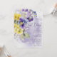 Dieses schlichte und elegante Design besticht durch einen Bouquet aus lila, gelben und lavendelfarbenen Stiefmütterchen und anderen Blume mit viel Grün. Der Hintergrund ist eine lila Aquarellfärbung auf einem texturierten, weißen Aquarellpapier-Hintergrund. Erstellt von der einfachen Farmhouse Press.