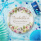 Elegante und farbenfrohe pastellrosa, lila und gelbe Aquarellblüte mit goldenem Glitzer auf einem weißen Quinceañera Geburtstagsfeier Teller Personalisiert mit dem Namen des Prominenten und ihrem Party Datum. Kontaktieren Sie mich, um Hilfe bei der Anpassung zu erhalten, oder um eine Abstimmung oder Koordination der Zazzle Produkte für Ihre Feier zu beantragen.