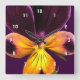 Lila Gelbe Blume Abstrakte Blumenuhr Quadratische Wanduhr